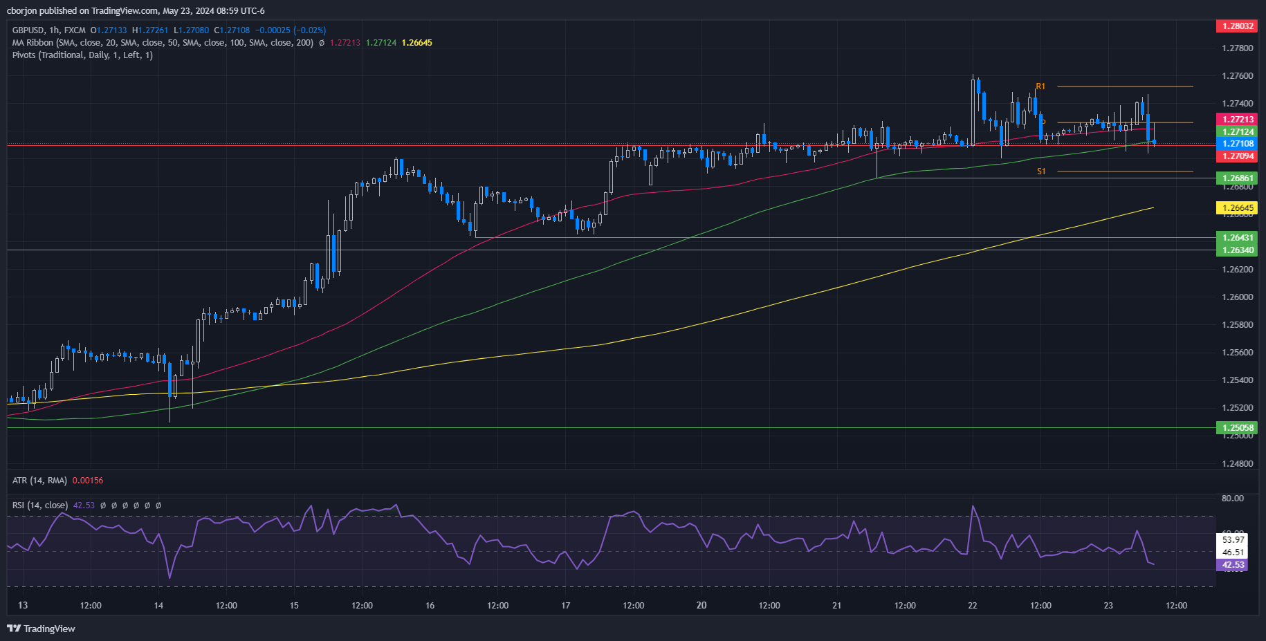 北美时段早些时候,在美国数据显示商业活动正在回暖之后,英镑兑美元下跌。与此同时,通胀压力上升,引发了投资者对美联储将在今年晚些时候推迟降息的担忧。英镑/美元在触及 1.2746 的高点后交投于 1.2