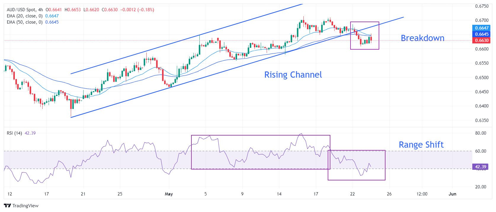 周四纽约时段,澳元/美元从日内高点 0.6650 回撤。标准普尔全球公司(S&P Global)公布了乐观的美国 5 月采购经理人指数(PMI)初值报告,美元出现强劲买盘,澳元资产因此承压。追踪美元兑