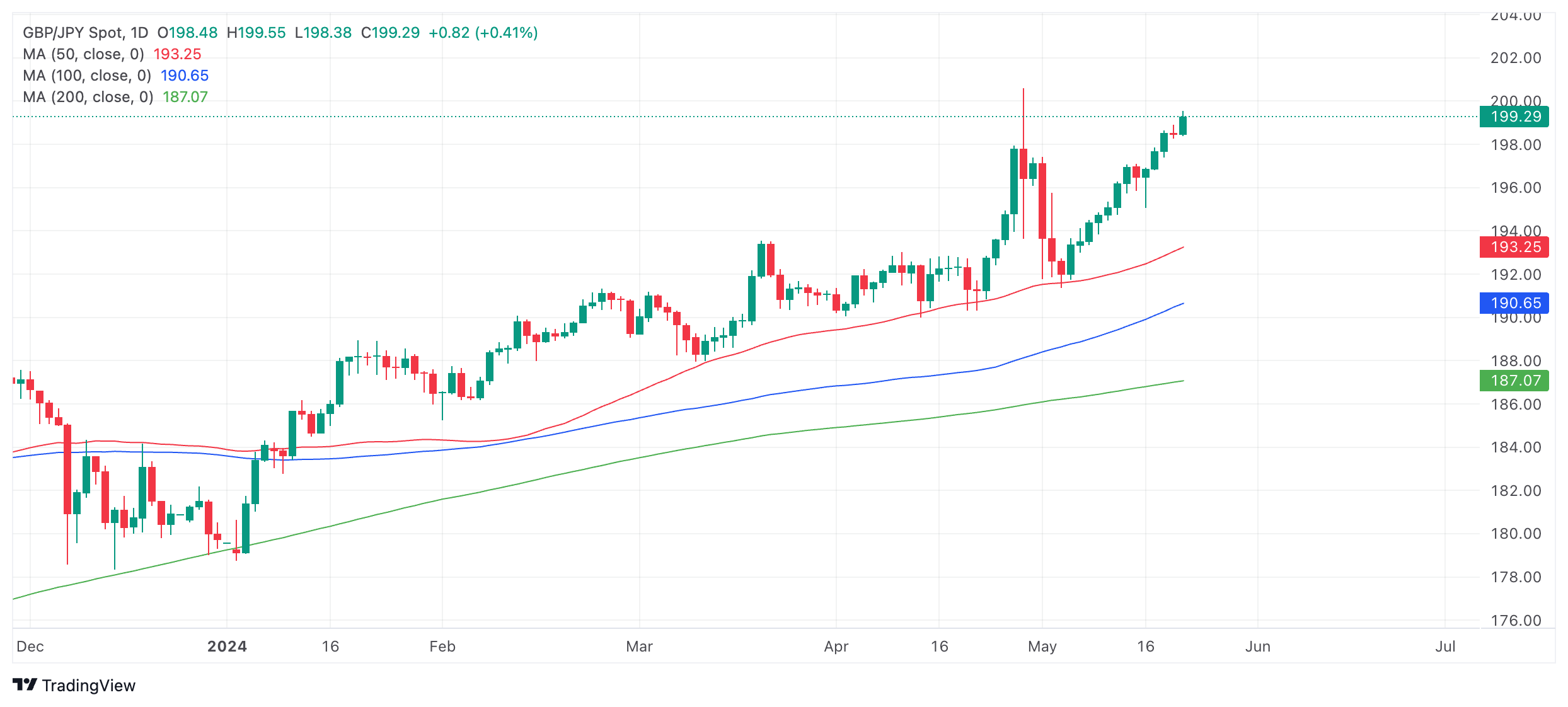 周三,英国通胀 数据高于经济学家的预测,英镑/日元升至 199.20 。该数据表明英国央行(BOE)可能推迟降息,这将利好英镑(GBP)。