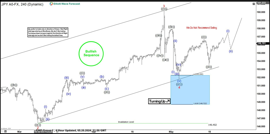 在以下这篇技术文章中,我们将研究一下美元/日元艾略特浪形,这一分析报告将在我们网站的会员区独家呈现。正如我们的成员所知,美元/日元最新从4月29日高位开始出现了明显的三浪回落。美元/日元在等边区域(蓝