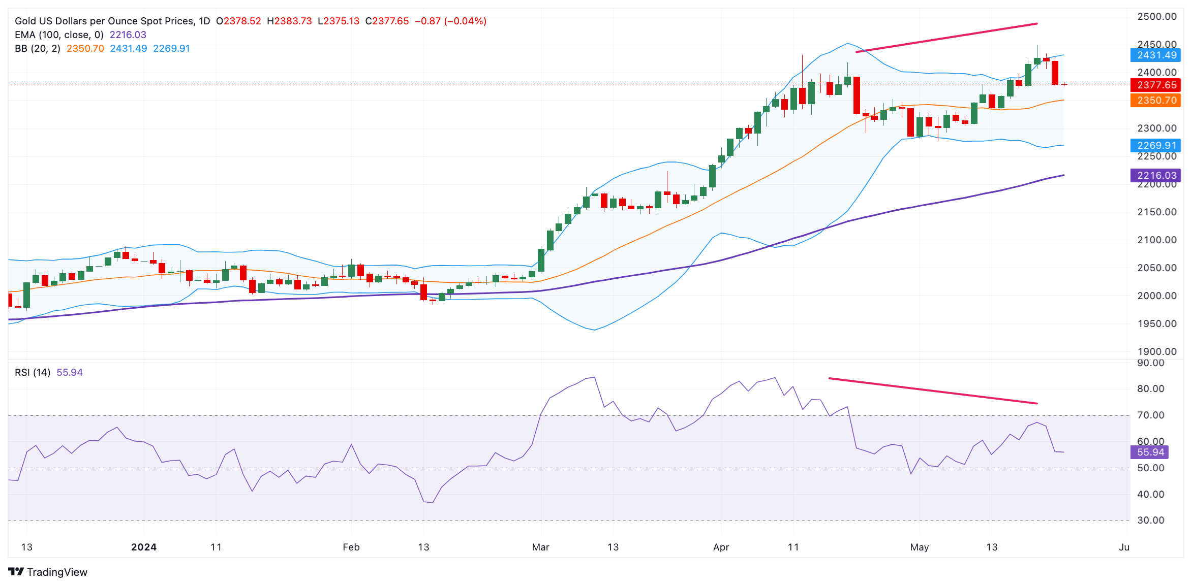 金价(XAU/USD)周三延续跌势。由于美联储 会议纪要被解读为比之前发布的会议纪要更加鹰派,黄金的进一步上行空间可能有限。美联储将其限制性政策维持更长时间的谨慎态度全盘提振了美元,并对金价造成了一定