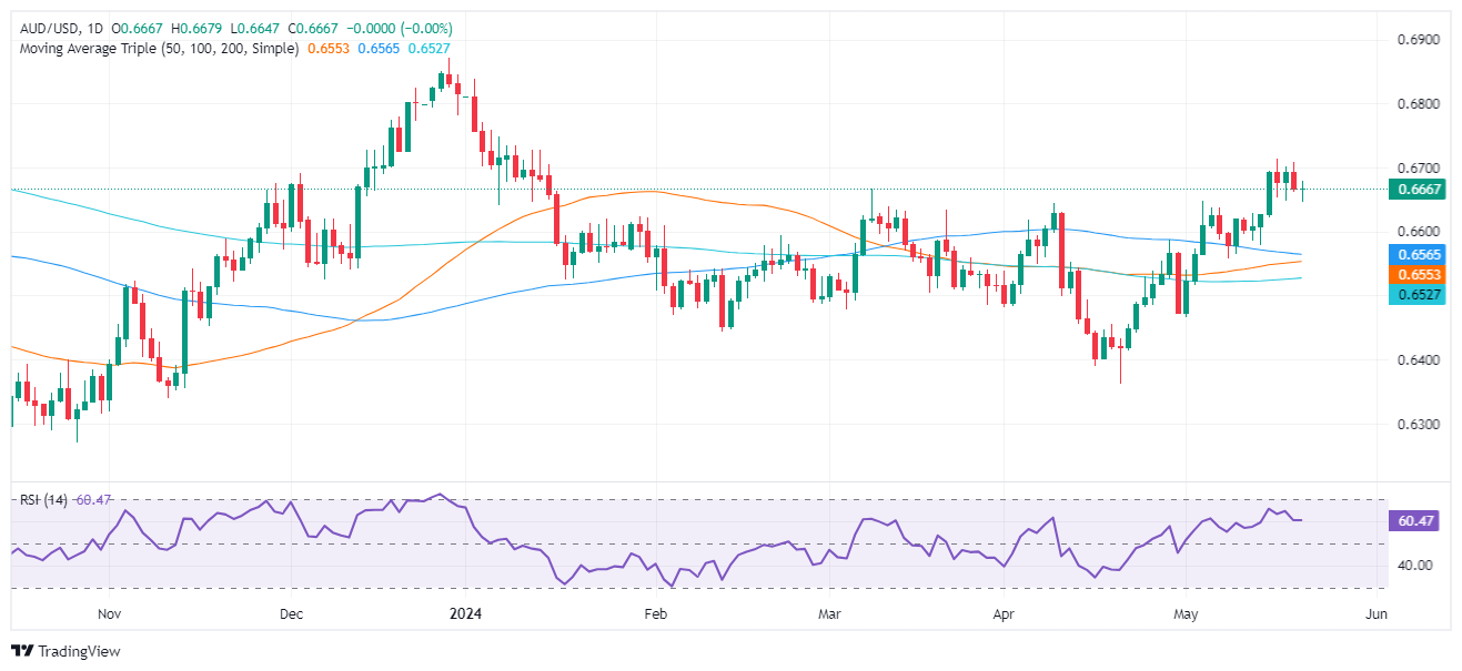 澳元/美元下跌了 0.03%,原因是美联储官员讲话中不愿暗示何时开始降息。因此,美国国债收益率下跌,而美元则维持高位,持平于 104.62 附近。澳元/美元报 0.6668,周三亚市开盘基本持平。