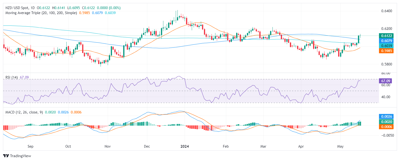 周四,纽元/美元持平于 0.6120 附近,因投资者似乎正在获利了结。在纽元/美元突破主要简单移动均线(SMA)后,纽元/美元前景转为看涨,但可能会进一步盘整。 日线图上,相对强弱指标呈现看涨势头,处