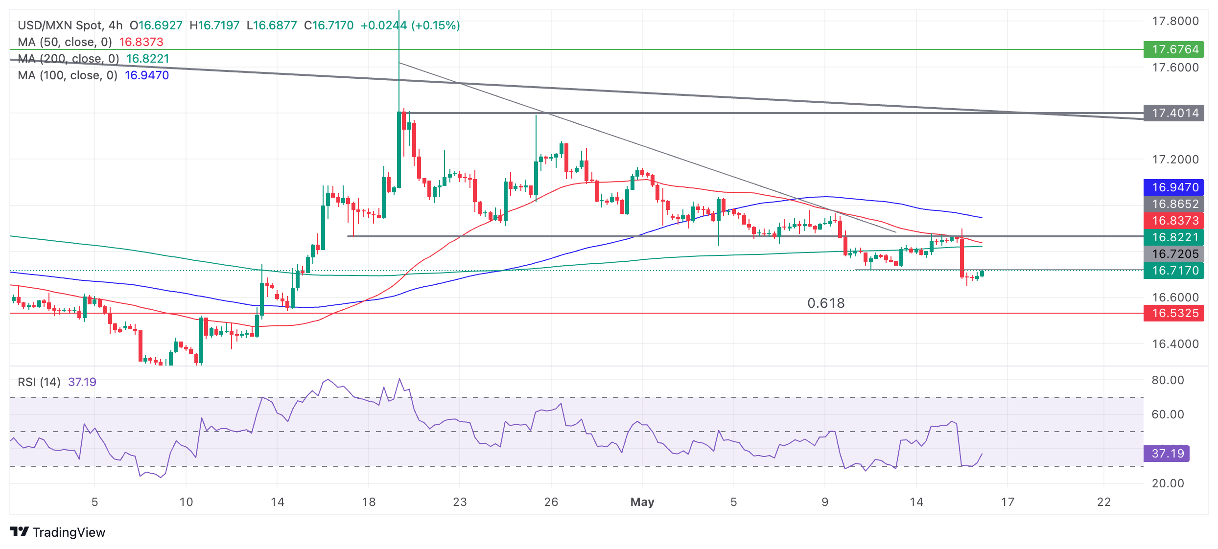 墨西哥比索(MXN)周四小幅下跌,因交易员在前一天比索强劲上扬后按下暂停。美国4月份消费者价格指数(CPI)和零售销售数据低于预期,表明通胀和经济活动有所降温,重新调整了利率预期。 数据显示美联储(F