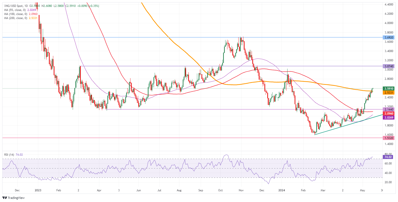 周四,天然气价格(XNG/USD)再次上涨近2.6%,达到四个月来的最高水平,并突破了另一个重要的技术水平,因为更多的头条新闻称中国正在垄断天然气市场。中国海洋石油总公司为液化天然气(LNG)油轮订购