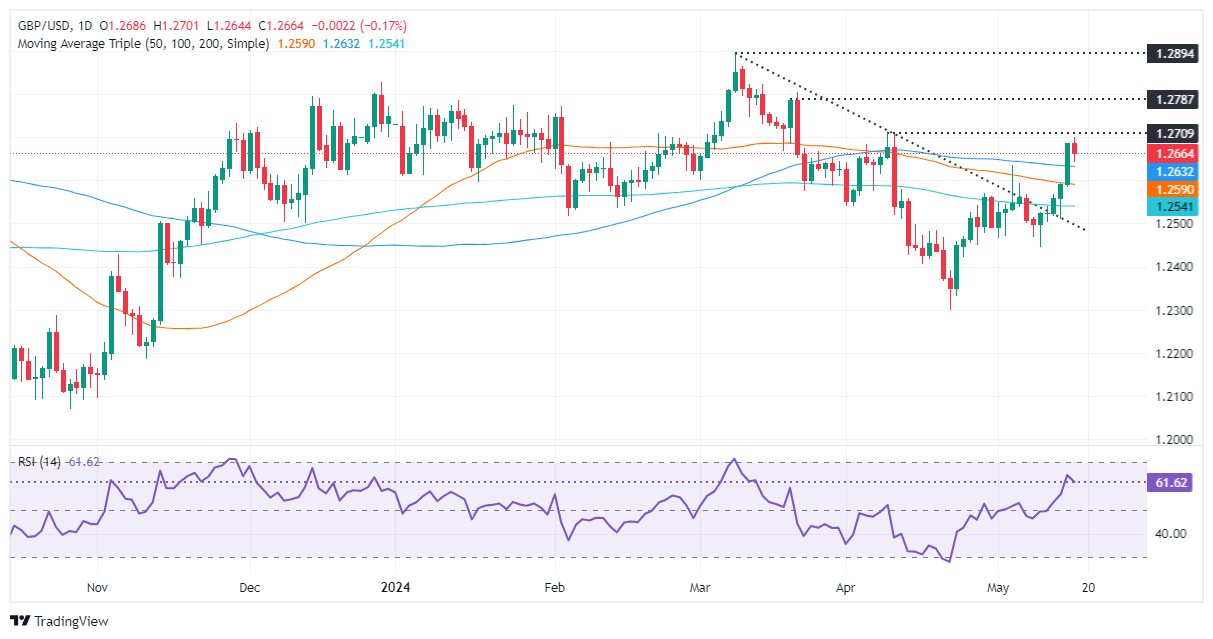 英镑/美元价格分析:买方难以突破 1.2700,英镑/美元回落