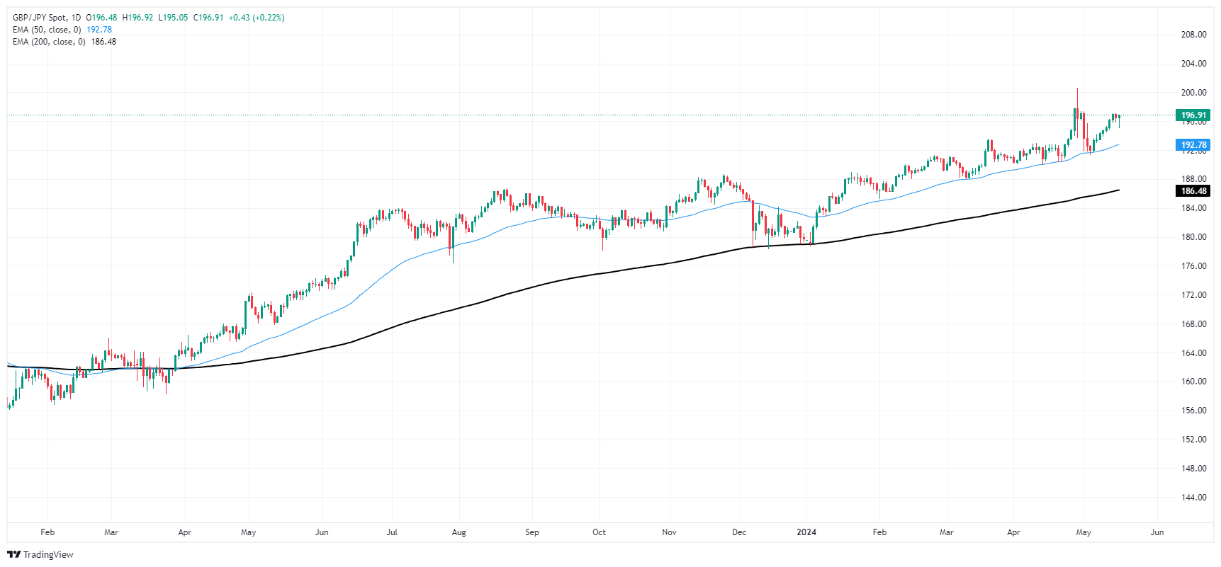 日元进一步走弱,英镑/日元维持在 197.00 附近