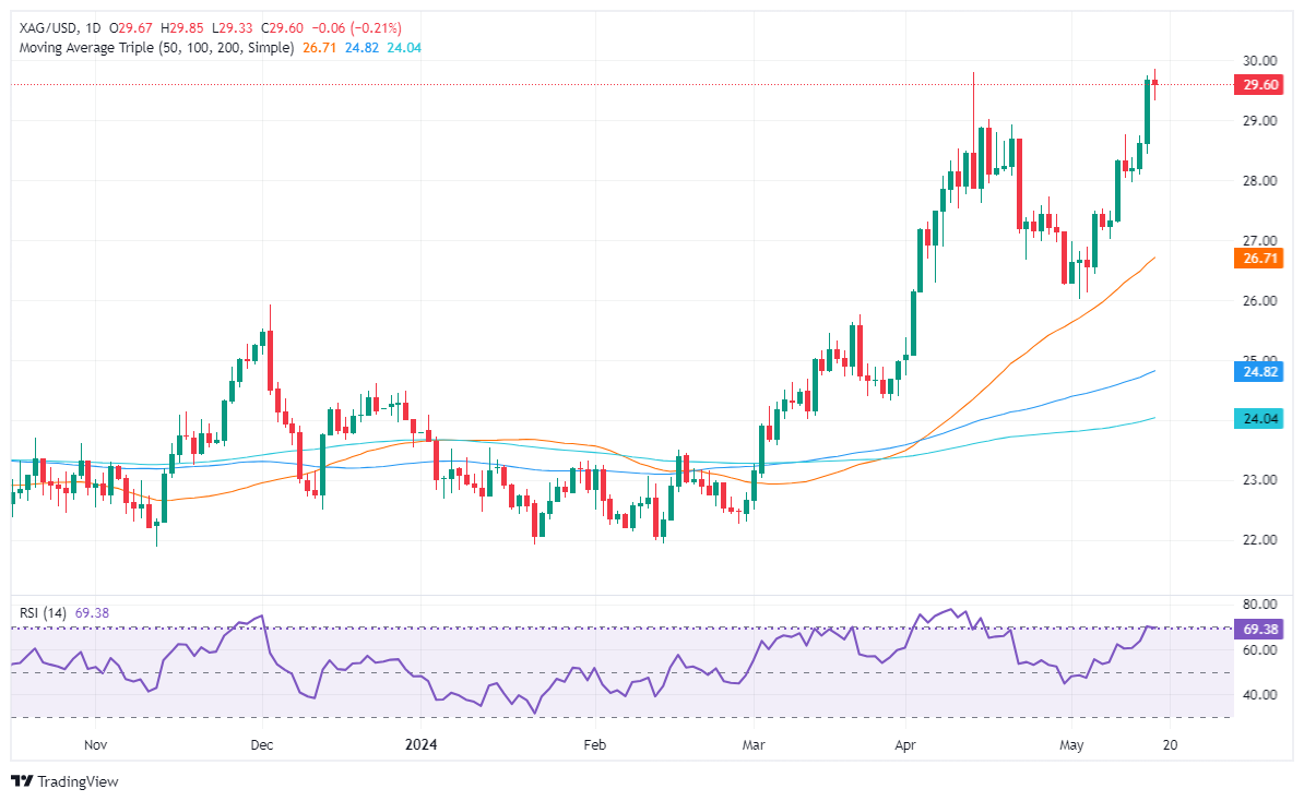 周四,银价升势暂停,微跌 0.04%,几乎持平。美国就业数据、住房数据好坏参半且制造业和工业部门的乏力,提振美债收益率和美元。因此,银价下跌,在发稿时交投于 29.60 美元。