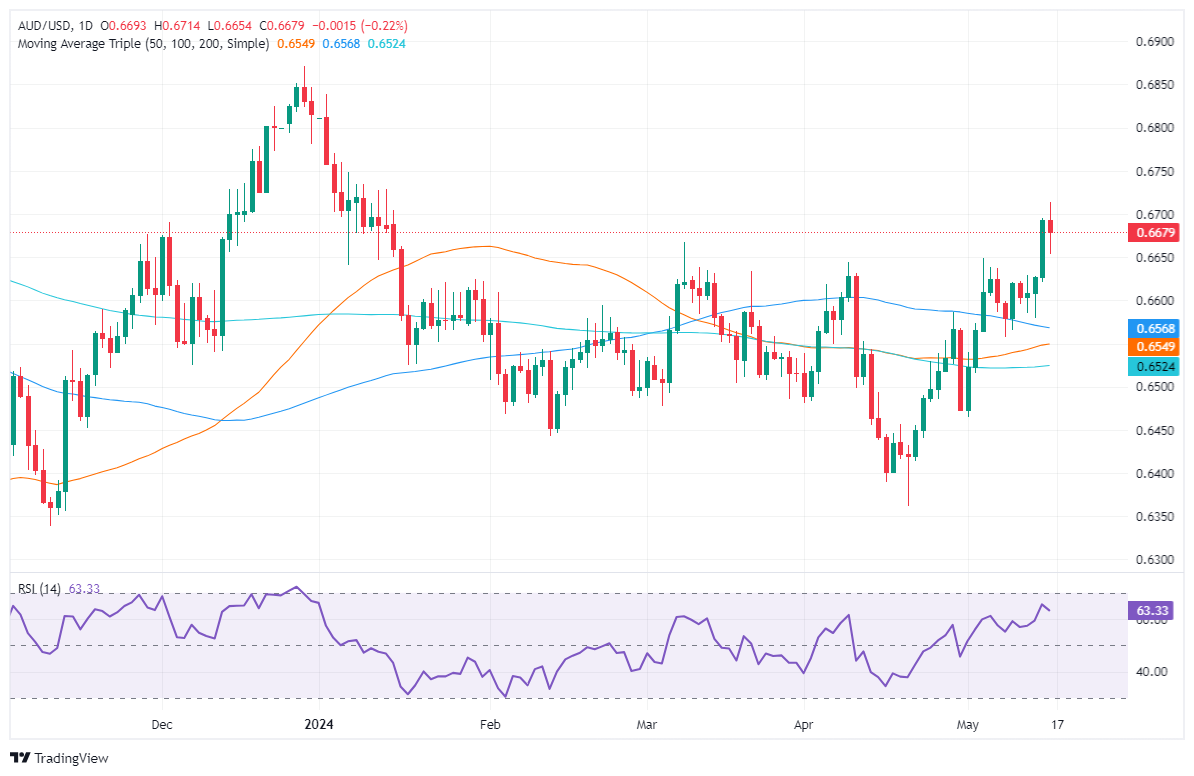 周四澳元/美元下跌了0.23%,原因是美债收益率上升,提振澳元/美元。华尔街创下历史新高,但随后回落,最终收盘下跌。周五亚市开盘,澳元/美元报 0.6678,基本持平。