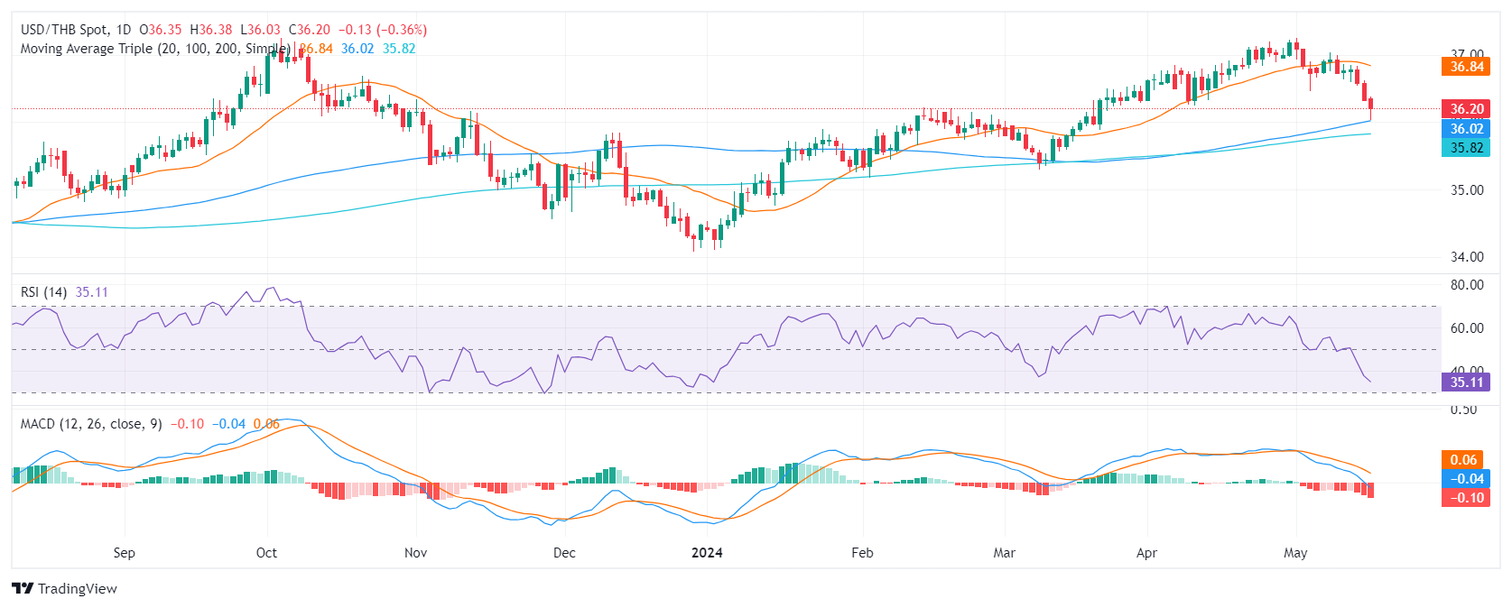周四,美元/泰铢疲弱,下跌 0.35%,报 36.20 附近。继消费者物价指数(CPI)低于预期之后,美国上周初请失业金人数疲弱和费城联储制造业调查的减少似乎正在推动美元下行,市场对美联储(FED)的