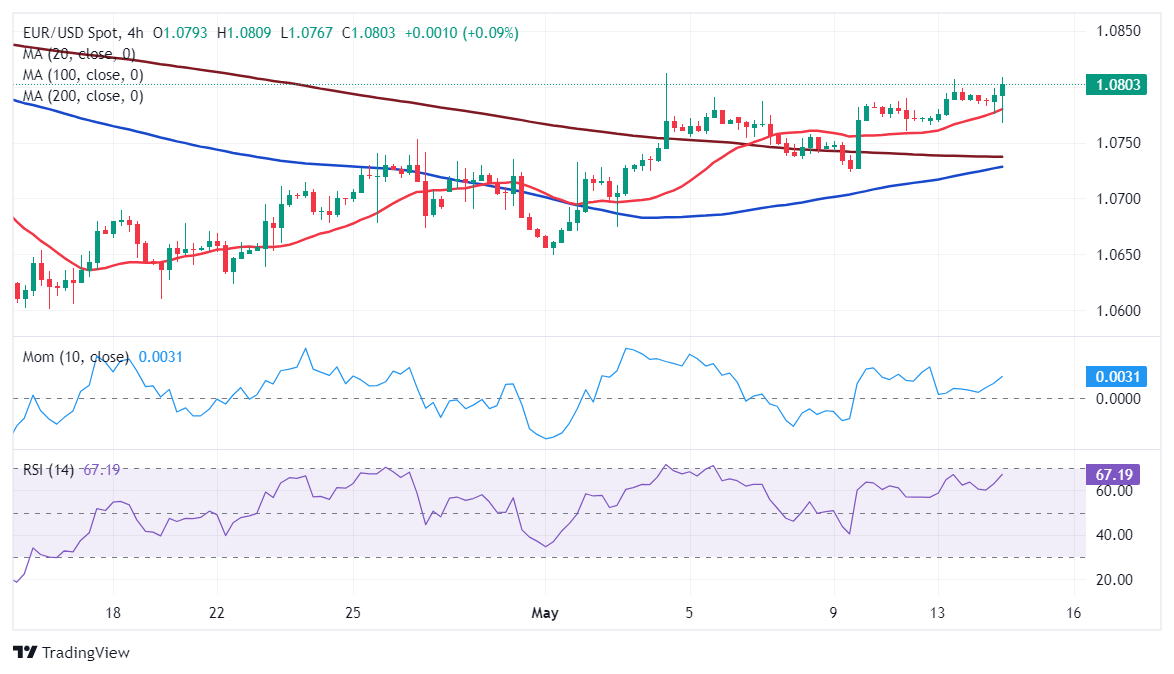 尽管欧元/美元在区间内小幅上扬,但交易依然毫无起色。整个交易日的前半段,该货币对一直徘徊在 1.0800 附近,卖方在 1.0810 附近以有限的信念拒绝上扬。通胀是 本周的焦点,德国确认 4 月份