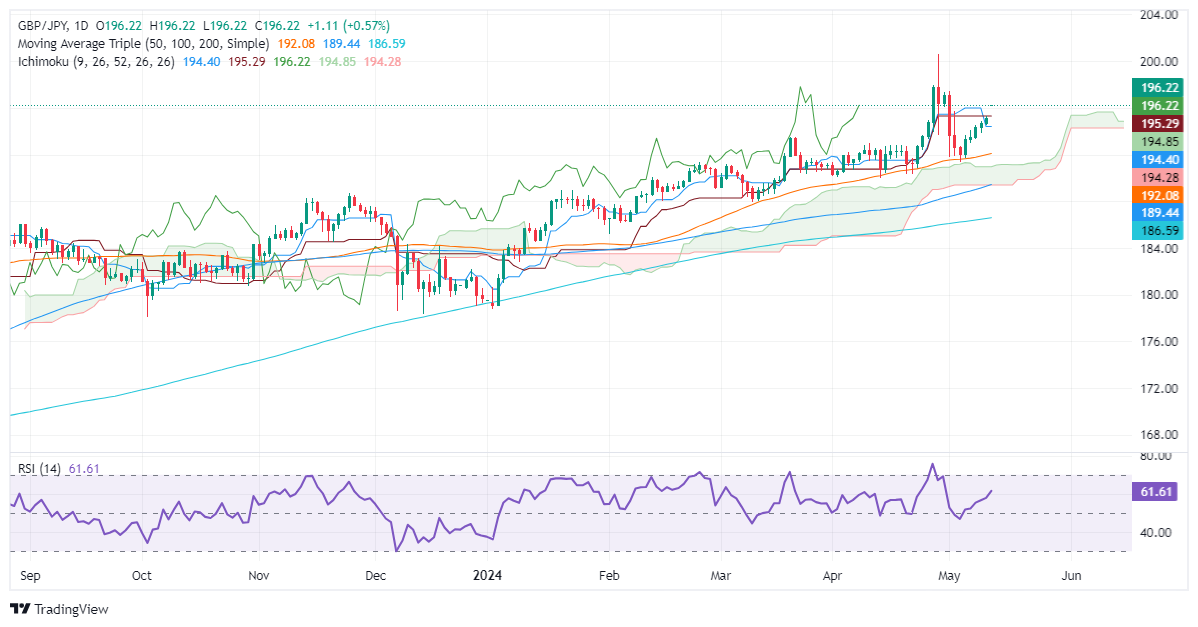 英镑/日元价格分析:连续六日反弹,多头指向197.00 水平