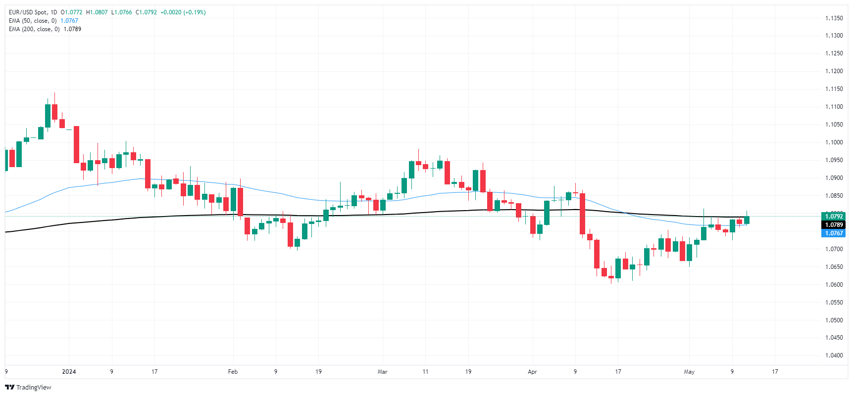 周一欧元/美元小幅上扬,从1.0770附近开始攀升,但看涨势头仍然有限,欧元/美元难以突破1.0800关口。