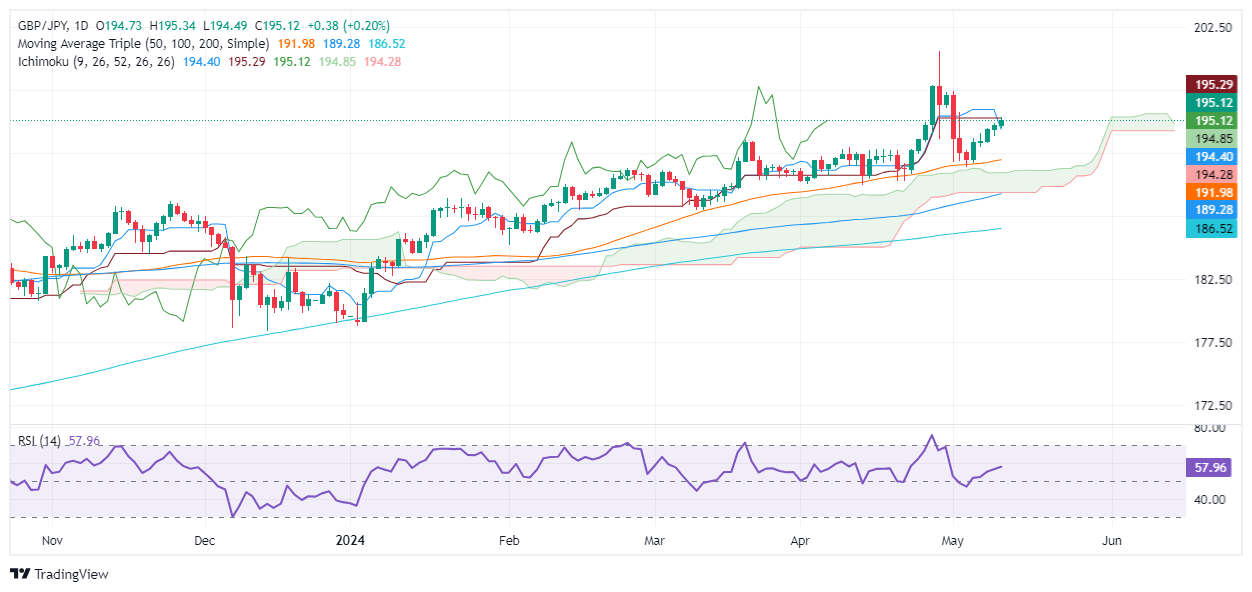 英镑/日元价格分析:连续五天反弹,升破195.00水平