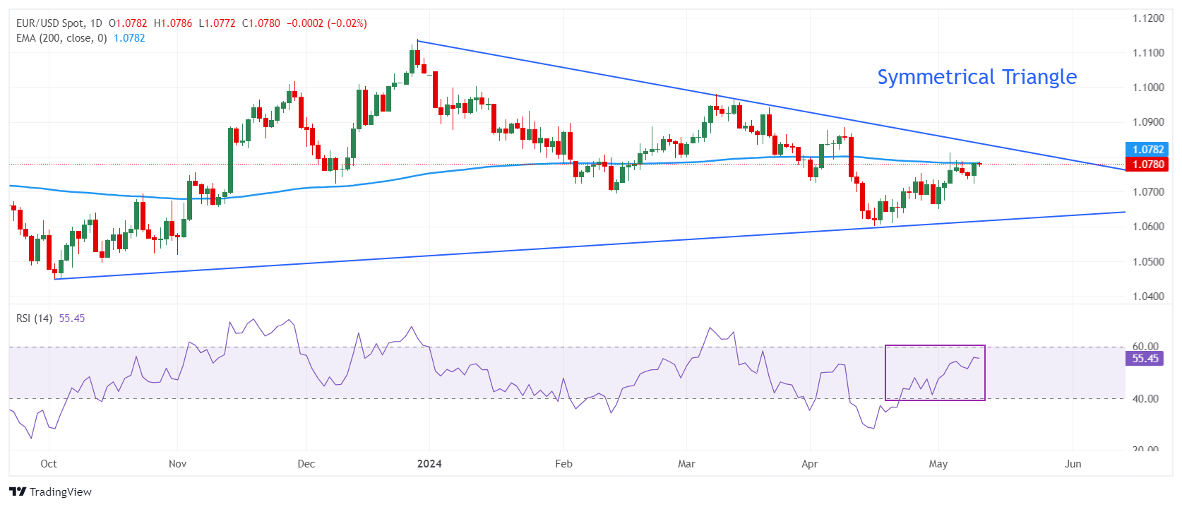 欧元兑美元在从1.0725大幅反弹后,周五欧洲时段在窄幅震荡中徘徊,略低于1.0800的关键阻力位。由于投资者已经消化了欧洲央行(ECB)将于6月开始降低借款利率的事实,该货币对保持强势。 然而,欧洲