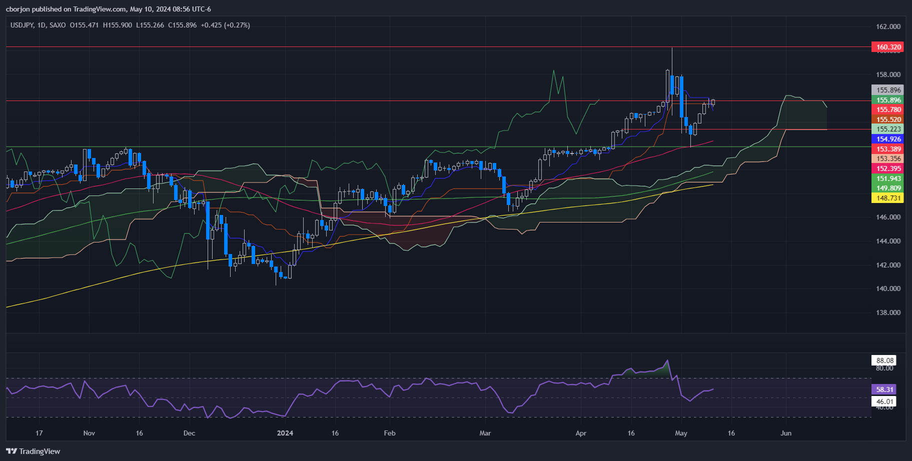密歇根大学(UoM)民调显示,美国消费者对经济的悲观情绪低于预期,美元/日元在北美时段稳步走高。在这种情况下此,该主要货币报 155.83,上涨 0.24%。