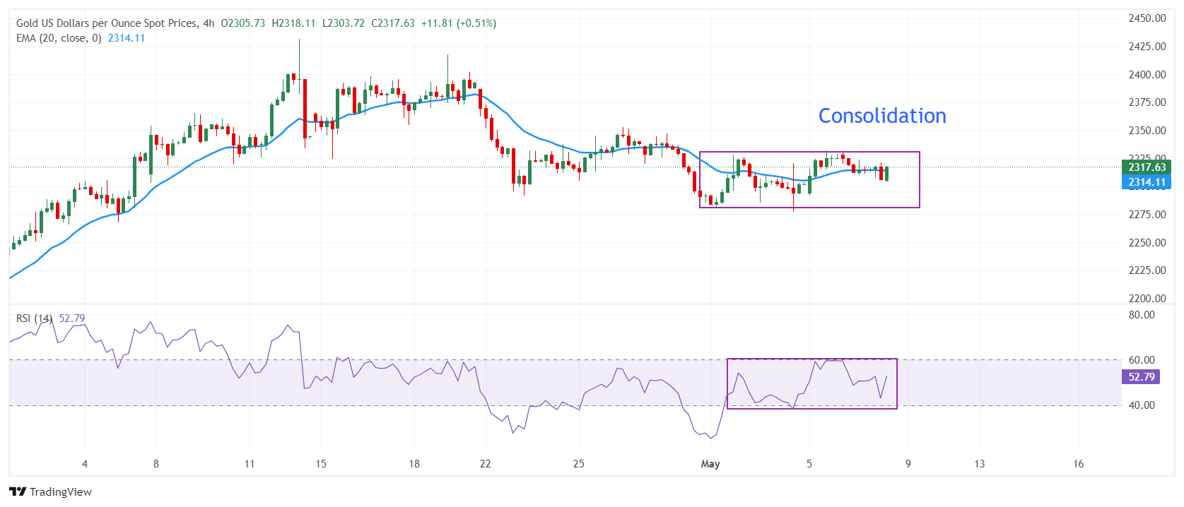 周三伦敦时段,金价(XAU/USD)在努力寻找方向。贵金属在略高于关键支撑位 2,300 美元的狭窄区间内徘徊。