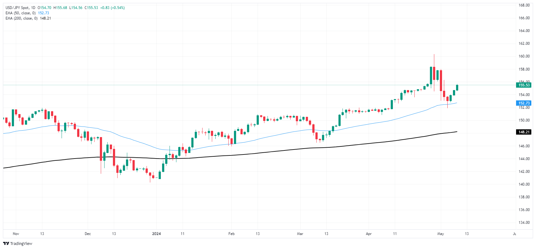 美元/日元继震荡后走高,正测试156.00水平