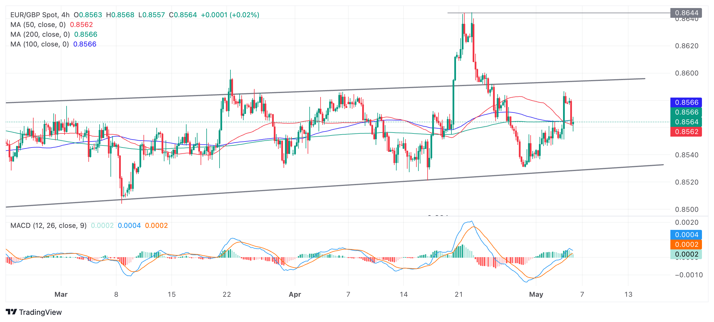 欧元/英镑价格周一交投于 0.8560附近,处于多月区间的中间位置。在上涨接近区间上限后走低。