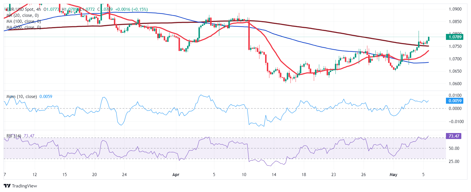 欧元区 4 月服务业采购经理人指数(PMI)终值向上修正后,欧元(EUR)走强,推动欧元/日元周一反弹,在 165.60 点位交投,涨幅超过 5%。