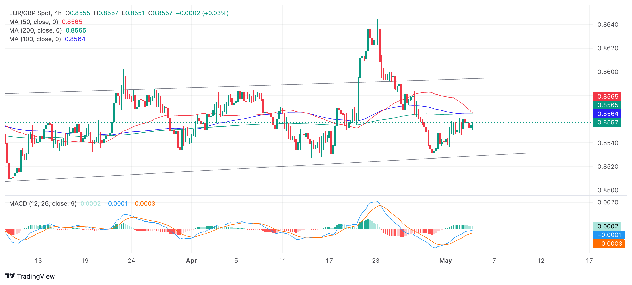 欧元/英镑在 0.8550 附近盘整,欧洲央行降息押注坚定,欧元/英镑可能下行