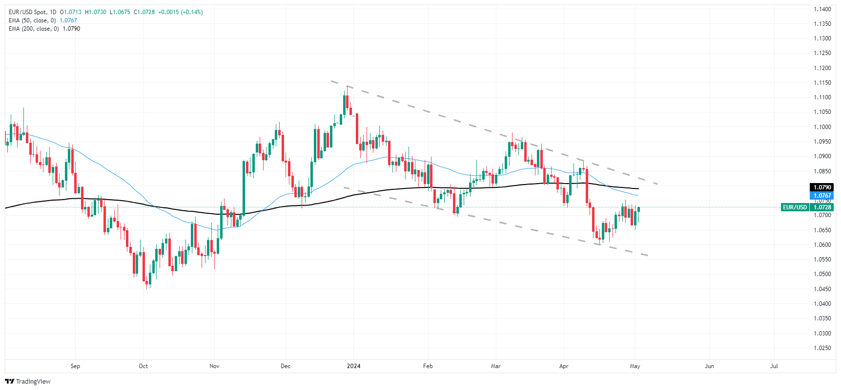 欧元/美元周四回到近期盘整区间顶部,收复1.0700关口上方区域,因市场风险偏好在周五美国非农就业数据(NFP)公布前恢复平衡。