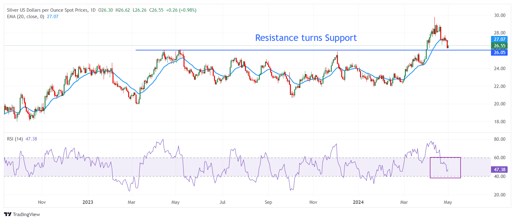 白银价格预测:美国制造业 PMI 报告疲软,白银/美元反弹至 26.60 美元