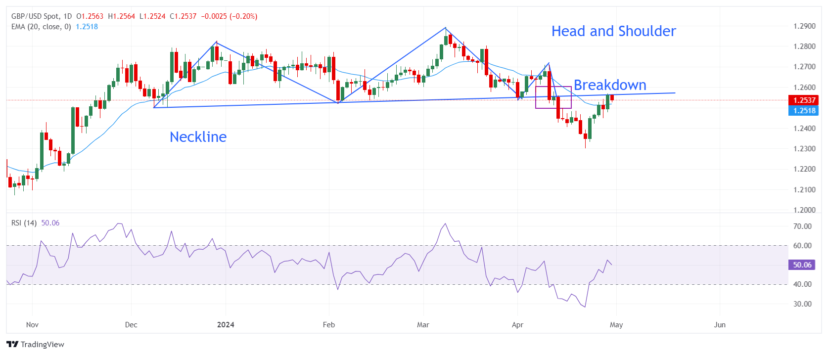 英镑兑 美元在涨势突破 200 日移动均线 (DMA) 后出现逆转。然而,美国的就业成本指数(ECI)显示通胀可能正在回升,这一数据提振了美元。因此,英镑/美元在触及 1.2563 的日高点后,以下跌
