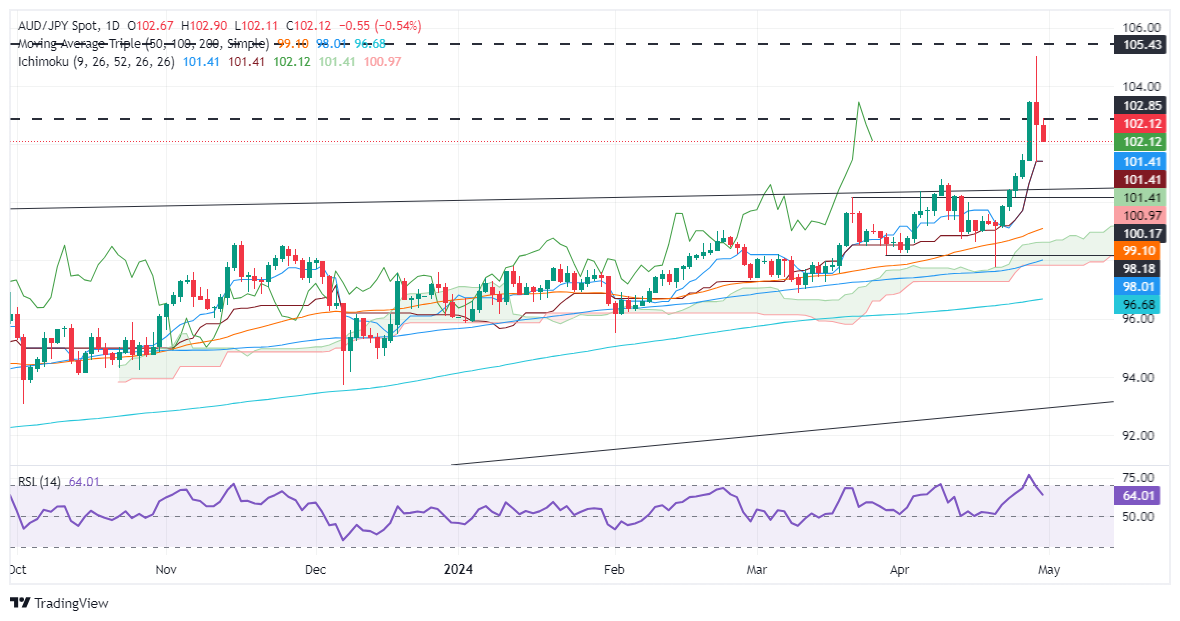 澳元/日元价格分析:空头走强,下跌接近 102.00 水平