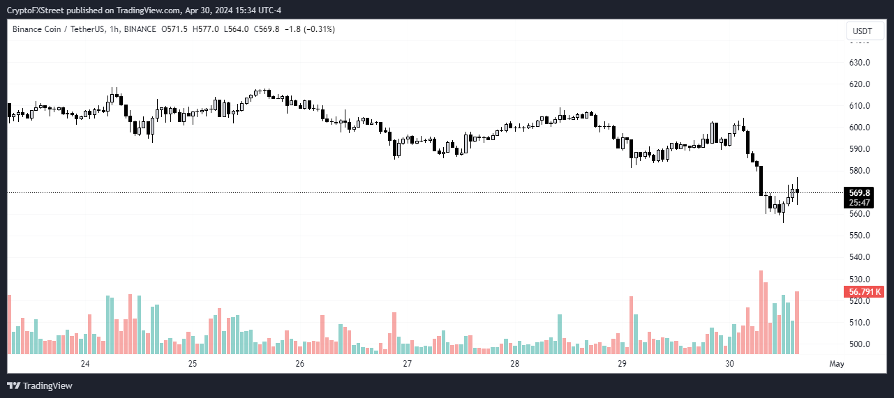 币安首席执行官赵长鹏被判处4个月监禁,币安币价格略现反弹