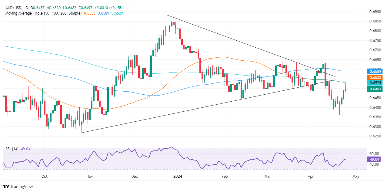 澳元/美元周三收盘上涨 0.15%,但从 0.6529 的周高点回落,该高点是在通胀报告好于预期之后触及的。美国的 经济数据提振了美元,美元指数(DXY)上涨了 0.13%,至 105.82。亚洲交易