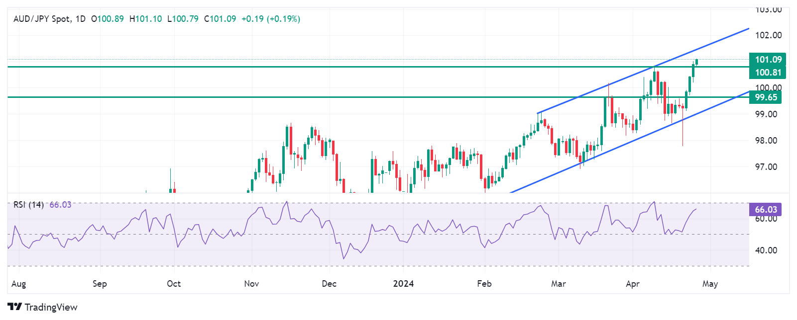 澳元/日元周四连续第四个交易日走高。周三公布的澳大利亚消费者物价指数(CPI)数据超出预期,澳元(AUD)因此获得支撑。这一进展暗示澳大利亚储备银行(RBA)的 货币政策可能持鹰派立场,从而提振了澳元