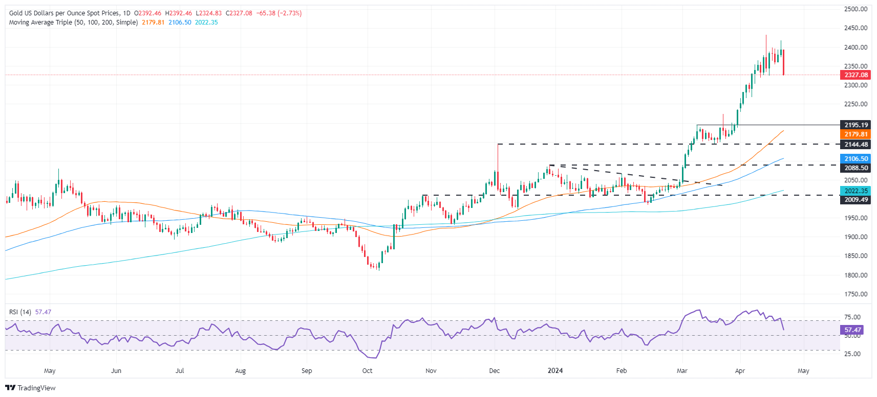 随着中东困境的缓解,金价大幅下挫并回调上周涨幅,跌幅超过 2.50%。正如 Kitco News 的 Jim Wyckoff 所说,黄金价格的回落可能是在于出现获利回吐,同时美元也略有走强。