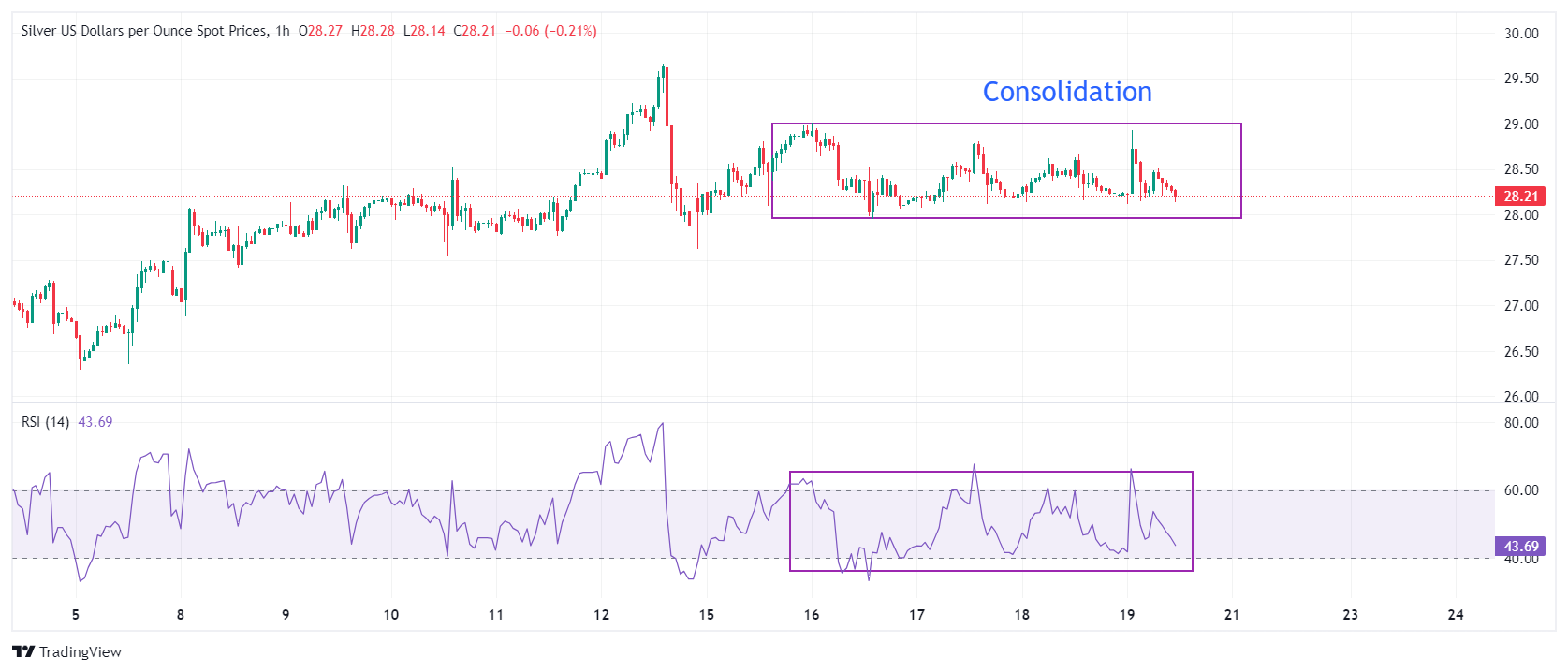 银价(XAG/USD)在周五欧洲时段试图夺回关键阻力位 29.00 美元时回落。来自中东的报道称,伊朗防空部队摧毁了以色列军队的三架无人机,从而导致白银价格回吐早盘涨幅。以色列尚未证实这些袭击是对伊朗