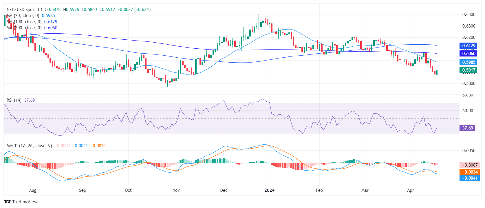 纽元/美元价格分析:相对强弱指标回升,但可能会持续下行趋势