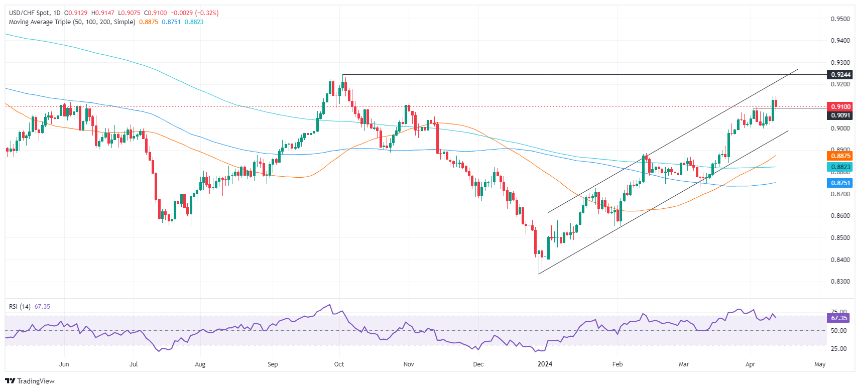 美元/瑞郎价格分析:上行遇阻,但震荡于 0.9100 附近