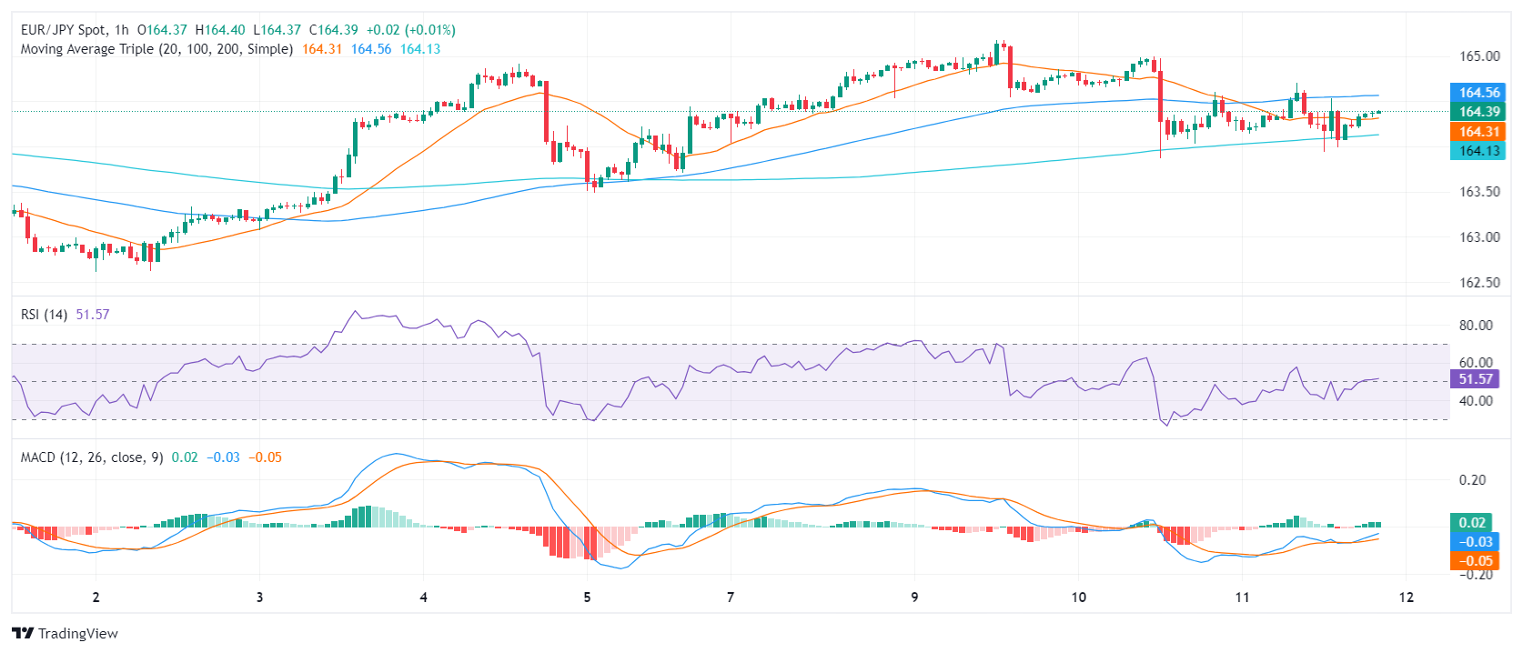 欧元/日元目前交投于约 164.37 水平,略现回落。尽管趋势看涨,但随着 日线图上看涨势头的减弱以及空头逼近 20 日简单移动平均线 (SMA),交易者必须密切关注可能会出现反转。