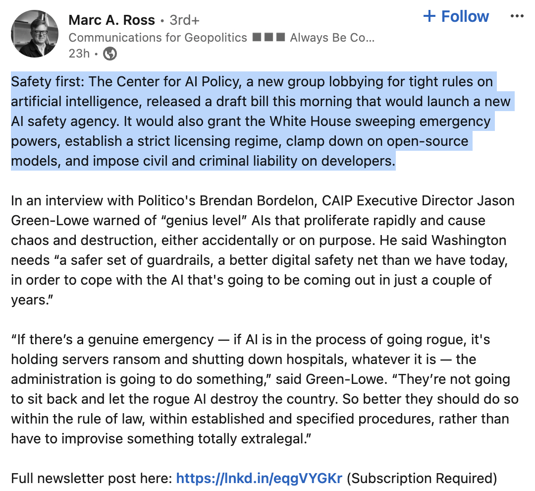 人工智能组织“人工智能政策中心”向国会和政策制定者提出了《2024年负责任的先进人工智能法案》。 人工智能提案引起了加密专家和律师的注意,他们正在权衡其对技术的影响。 周三,人工智能代币RNDR、GR