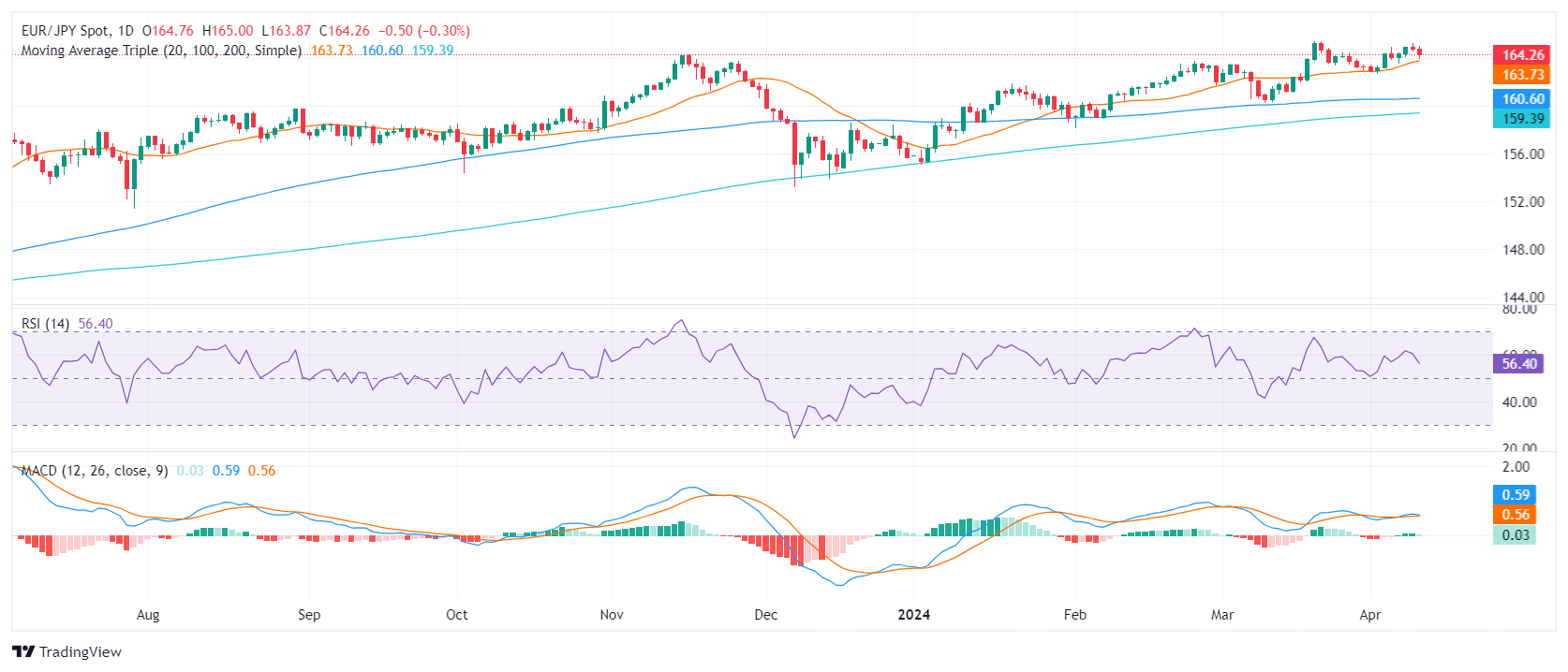 欧元/日元现报164.25,周三下跌了0.30%。尽管该货币对位于关键的简单移动平均线(SMA)上方,但随着技术指标失去动能,该货币对的动能正在从多头转向空头。