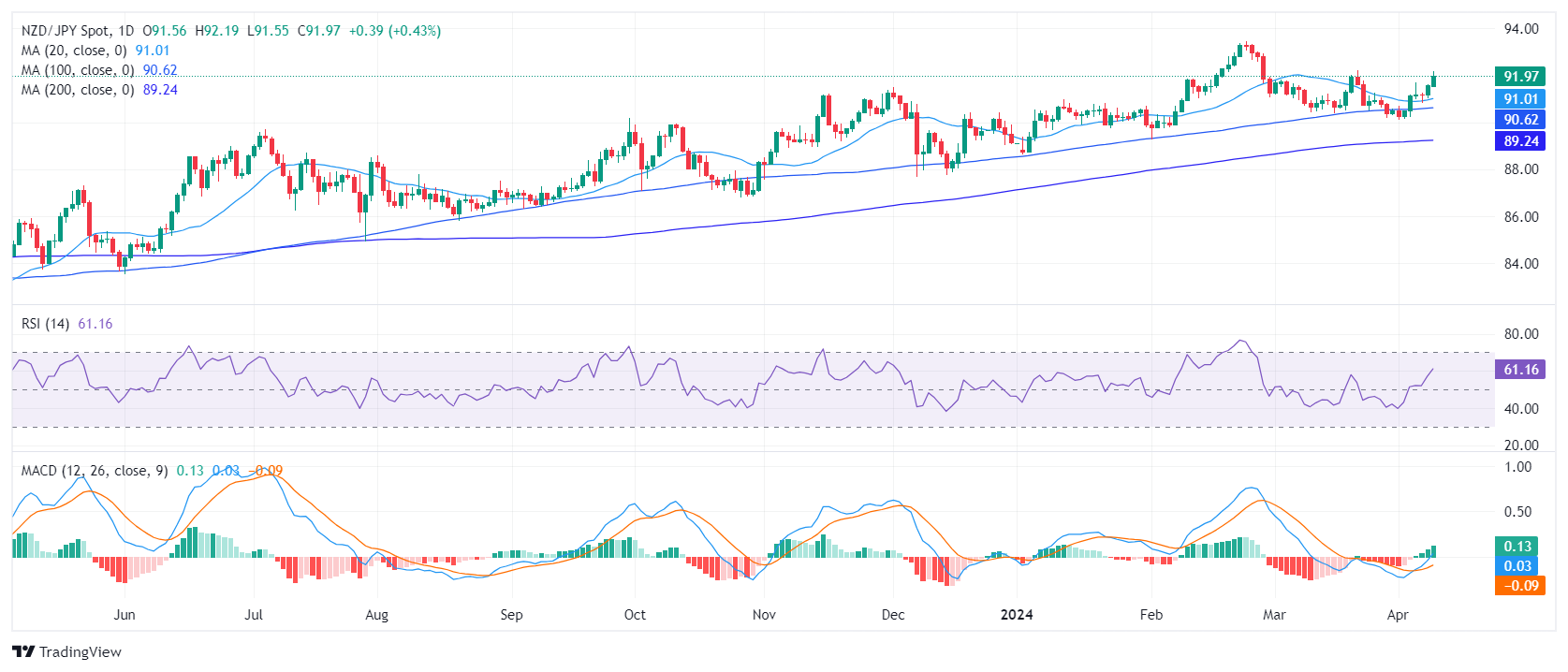 纽元/日元目前交投于 91.79,上扬了 0.25%。目前,纽元/日元出现强劲的看涨走势,买盘动能增强,因为纽元/日元稳稳地位于主要简单移动均线(SMA)上方。日线图技术指标依然强劲,而小时图指标可能