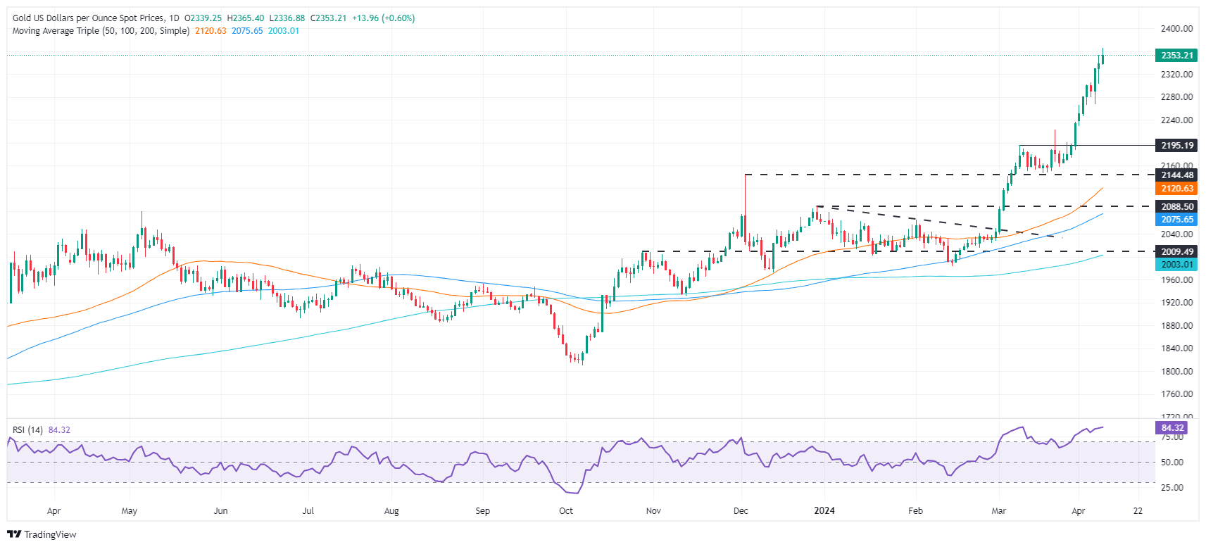 周二,继美国时段金价隔夜盘中刷新历史高点至2365美元后,金价有所回落。在风险推动和美国国债收益率下降的影响下,黄金收窄早些时候的涨幅,而美元则在周一下跌0.16%后得到喘息。金价报 2346 美元,