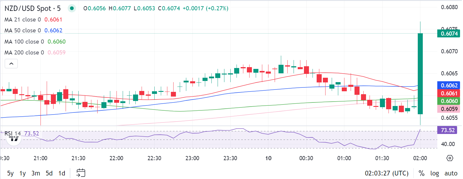 纽储行利率决议后,纽元/美元震荡于0.6060附近