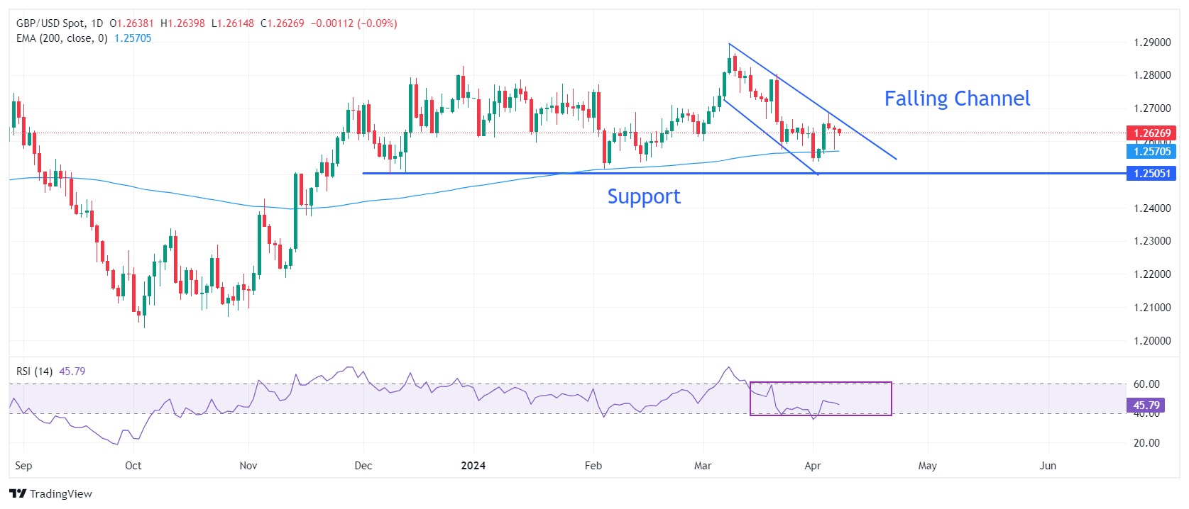周一欧洲时段,英镑(GBP)小幅下跌,但大致在 1.2600 以上的狭窄区间内盘整。英镑/美元货币对横盘整理,投资者在等待将于周三公布的美国 3 月份消费者物价指数(CPI)数据。通胀数据将进一步明确