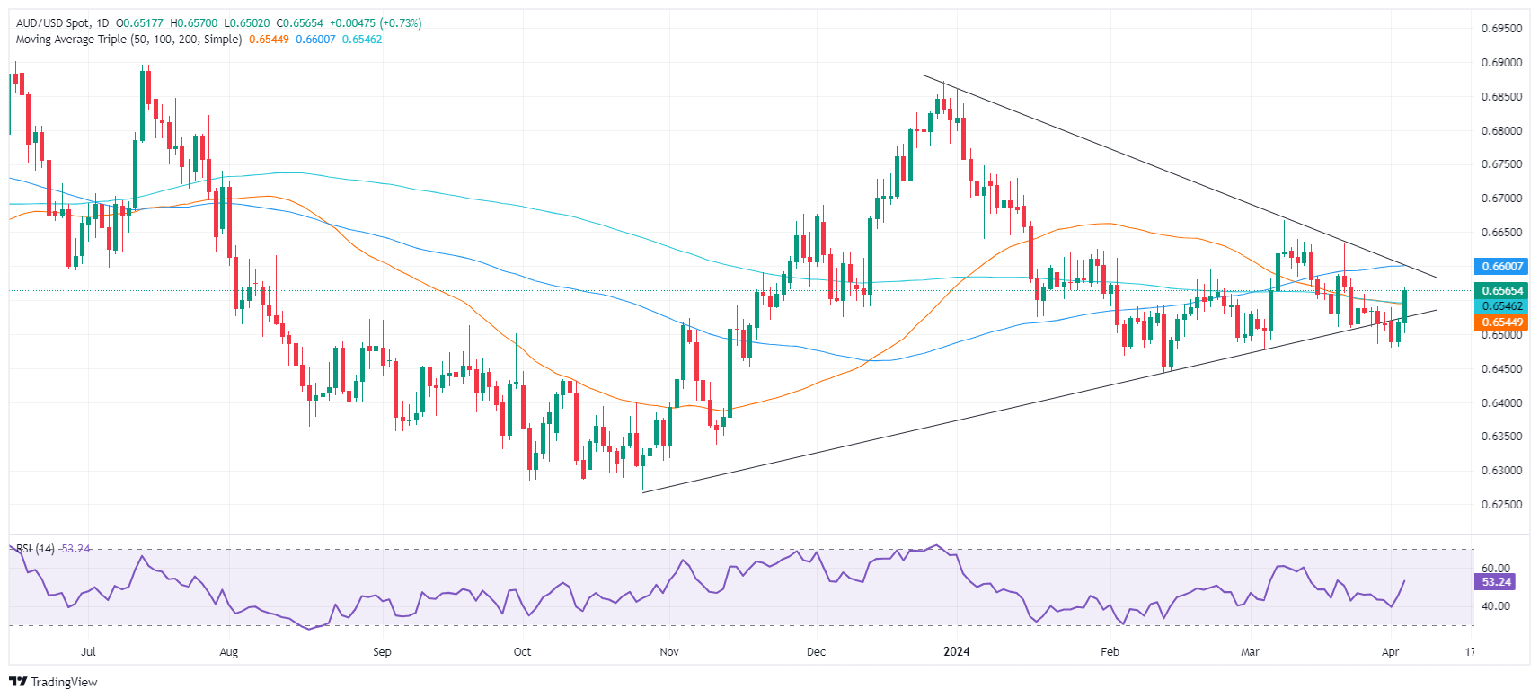 周三,受美国国债收益率下降和美元疲弱的提振,澳元/美元稳健上扬。美联储决策者讲话成为头条新闻,而美国经济数据喜忧参半,美国ADP就业人数变化数据强劲,但采购经理人指数疲弱。澳元/美元报 0.6565,