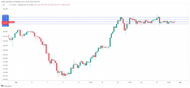日元继续度过平静的一周,在欧洲市场保持不变,为151.17。 东京核心CPI小幅下降至2.4% 东京核心CPI(不包括生鲜食品)3月份同比下降至2.4%,低于2月份2.5%的增幅,符合预期。这一通货膨