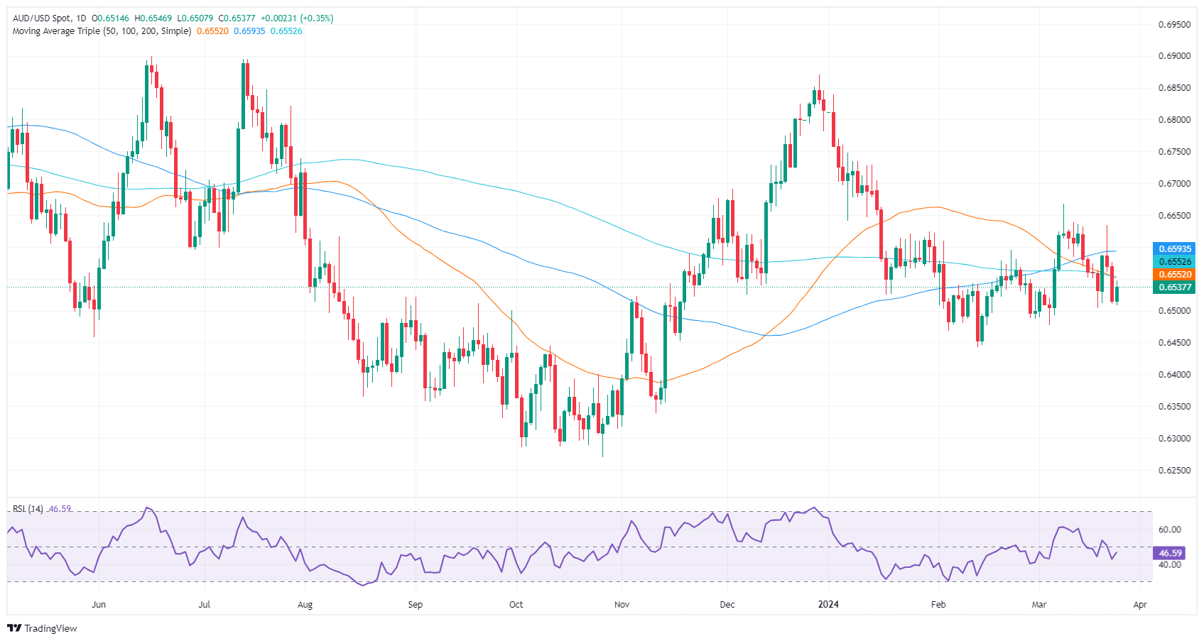 澳元(AUD)兑美元(USD)在触及 0.6509 的日低点后回升,尽管美元的广泛疲软支撑着这一与大宗商品挂钩的货币。截至发稿时,澳元/美元报0.6543,上涨0.43%。
