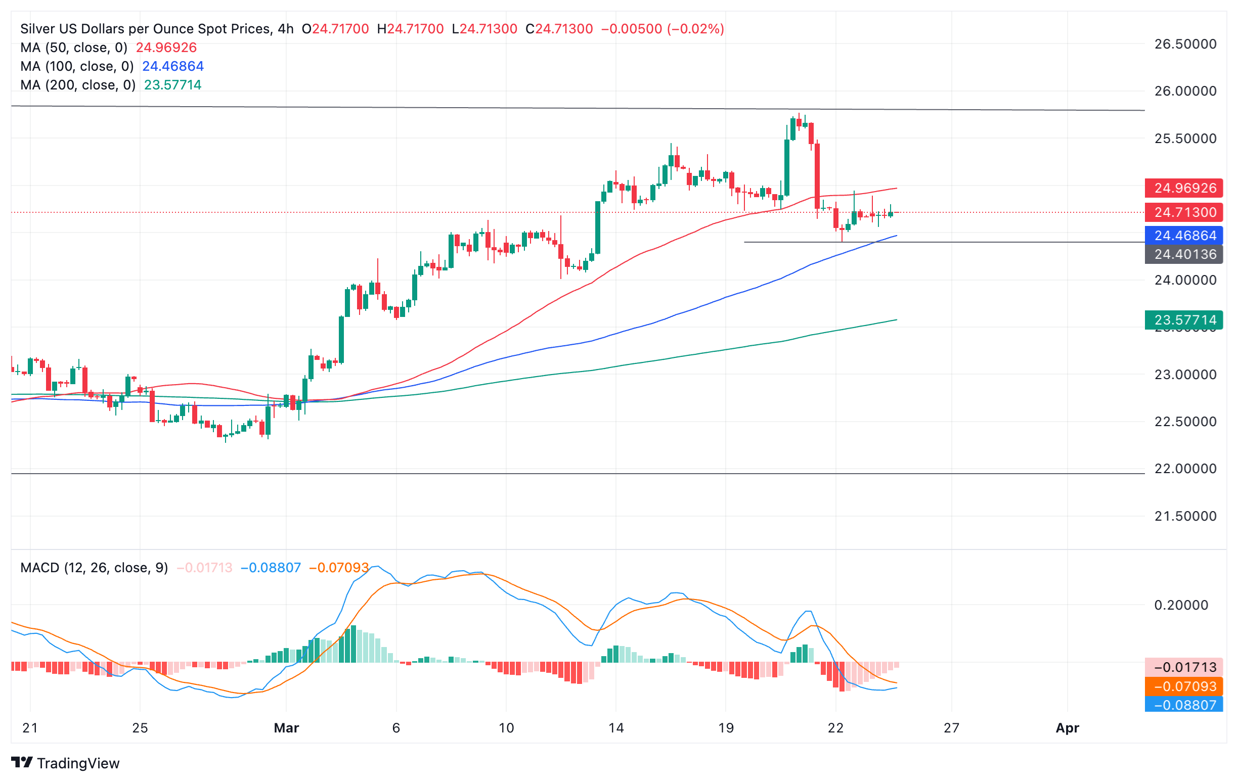 白银(XAG/USD)价格有可能扭转其短期上升趋势,并在自 2023 年 4 月以来近一年来一直摇摆不定的区间内走低。
