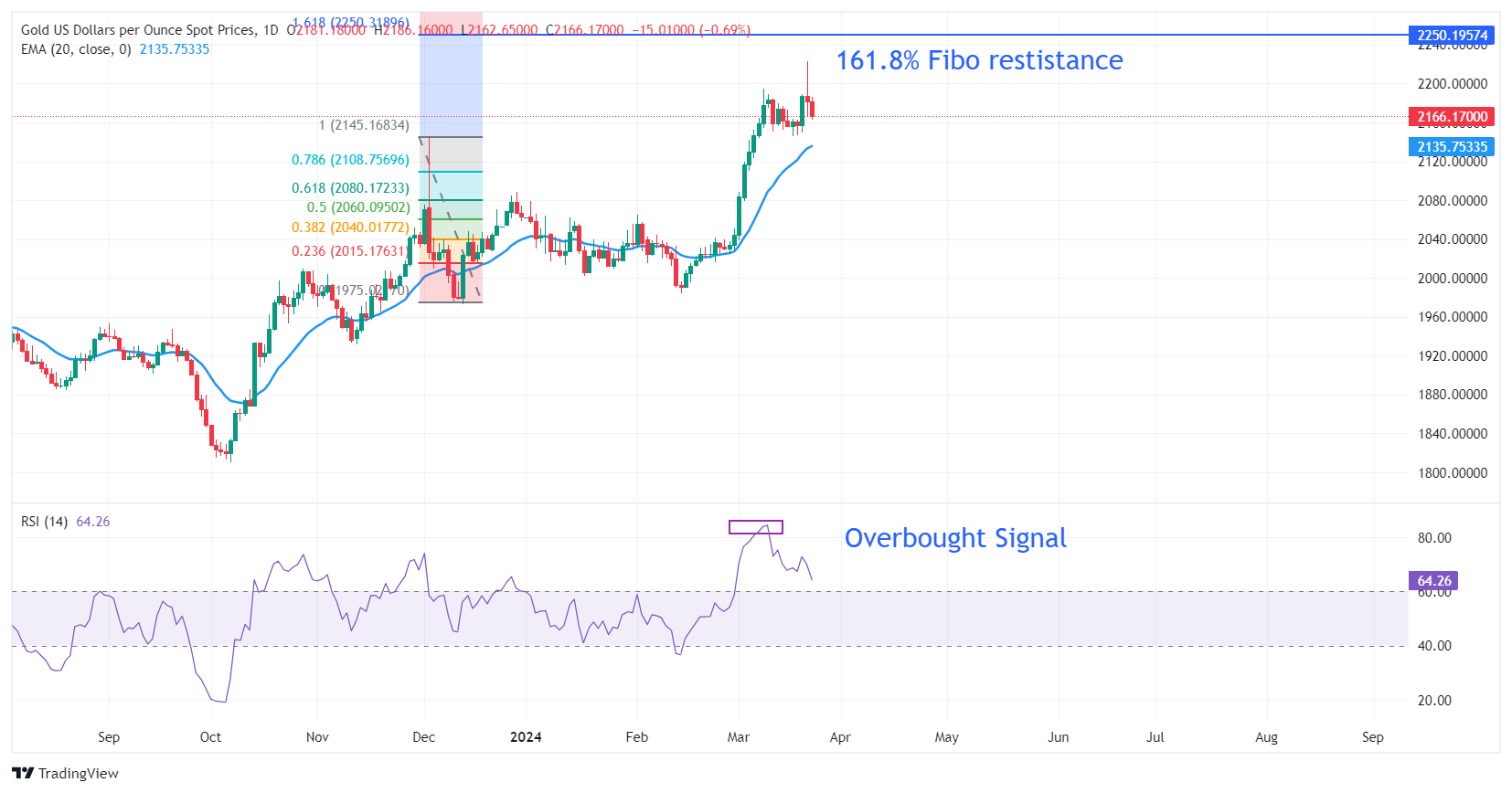 周五欧洲时段,金价(XAU/USD)在未能维持在 2220 美元上方的历史高点附近后,下行幅度扩大至 2160 美元附近。由于 美国 经济前景乐观,周四公布的现房销售数据强劲,美元走强,贵金属面临大幅