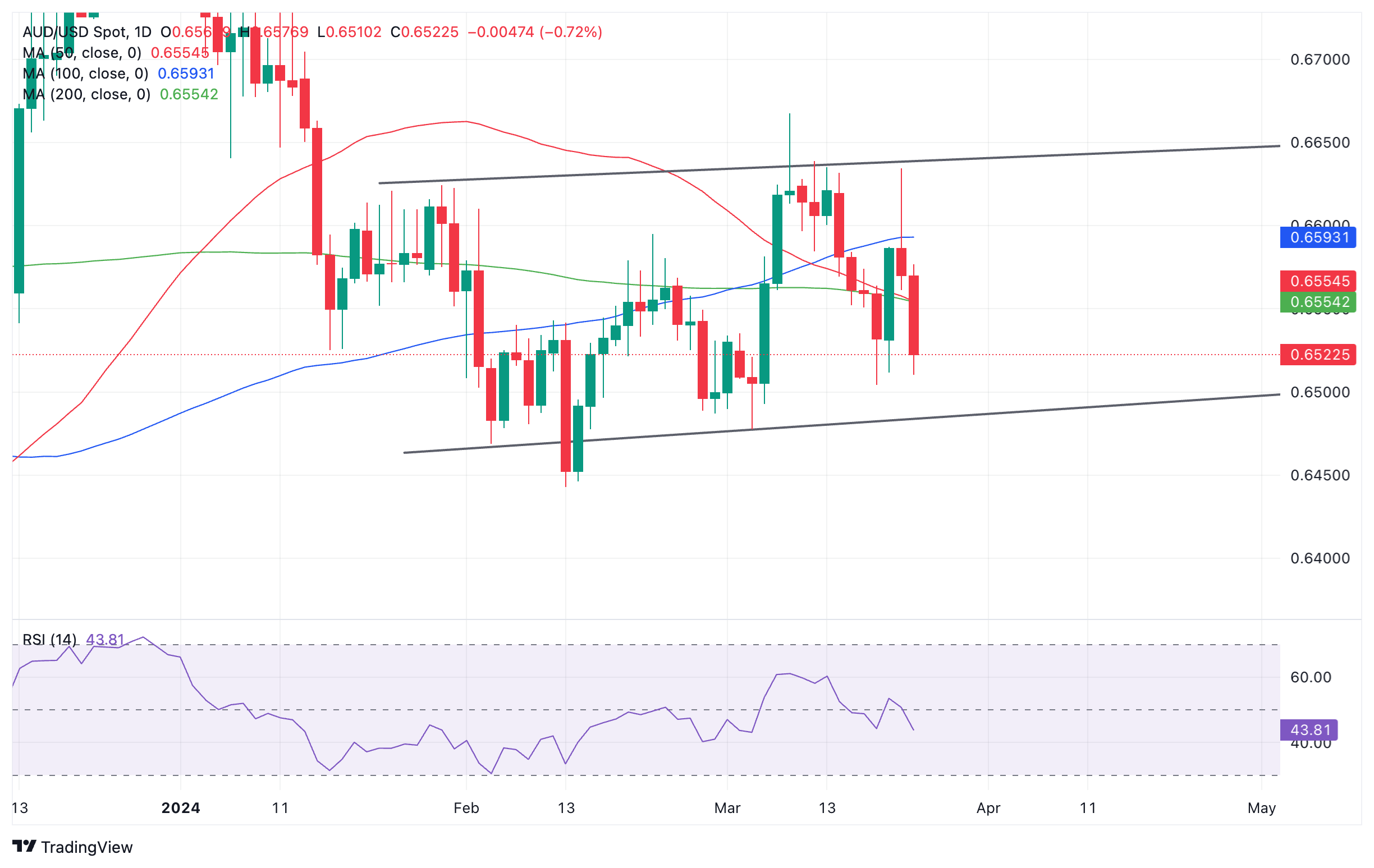 在积极的美国数据导致澳元/美元从周四0.6634高点反转后,澳元/美元周五回落至0.6500低位区域的多周区间底部。