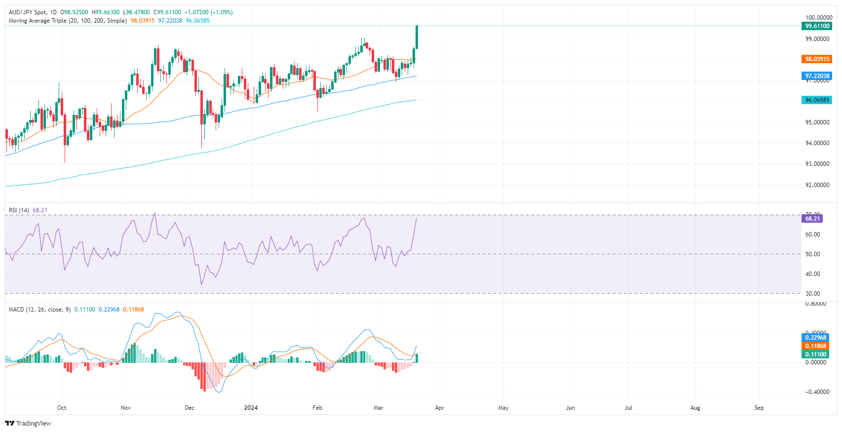 澳元/日元价格分析:多头维持强劲势头,技术指标处在超买暗示可能出现回调